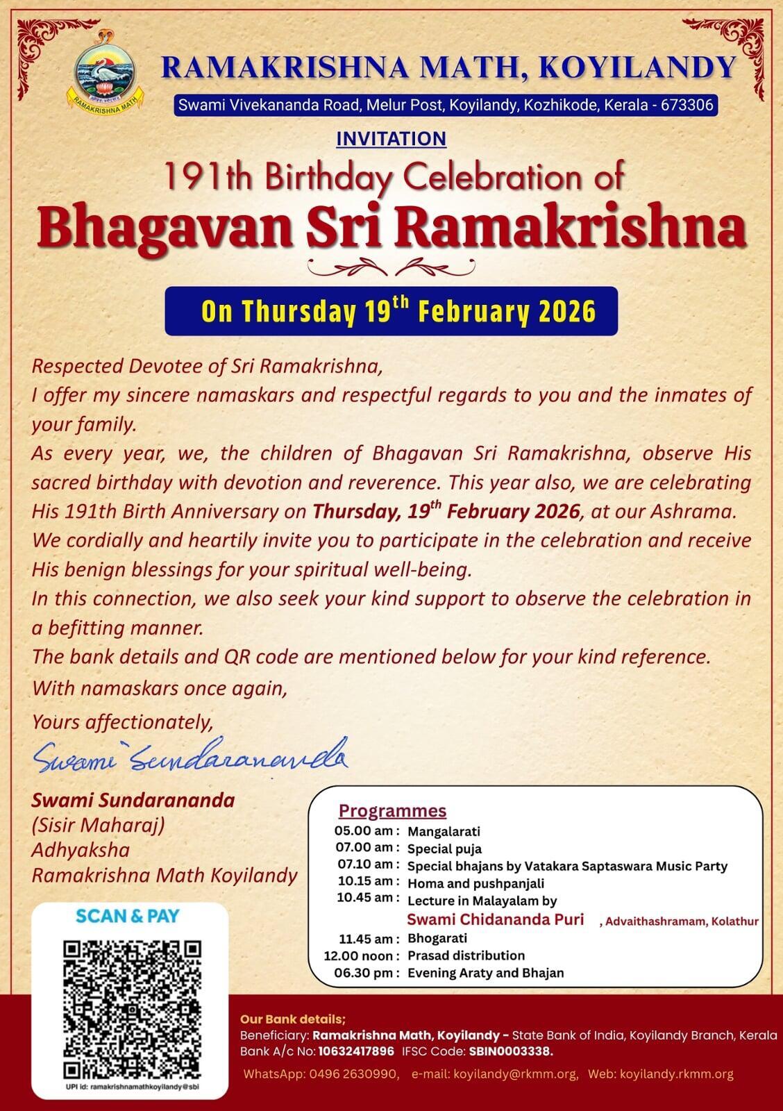 Sri Ramakrishna Birthday Jayanthi