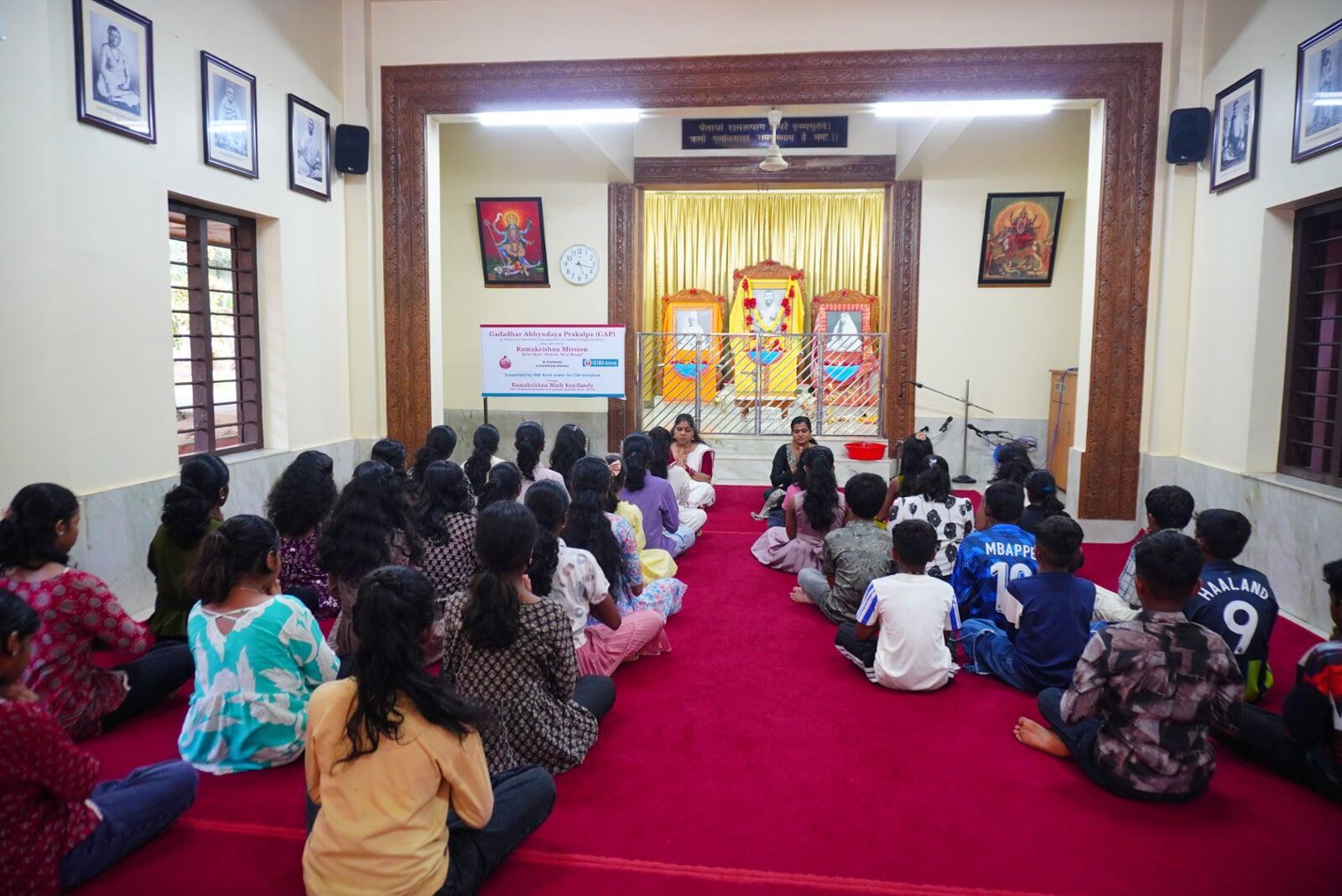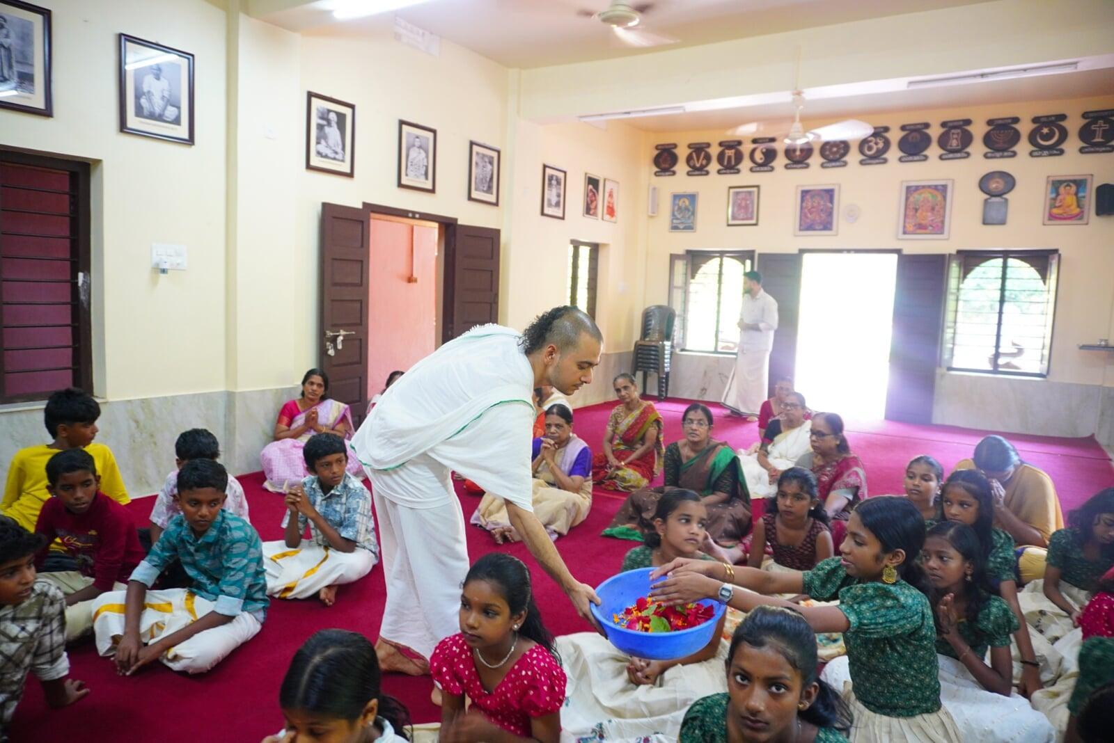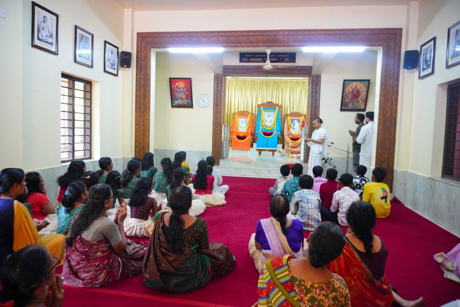 The programme began with prayers followed by bhajans etc at the Ashrama shrine. After concluding, prasad was distributed to the GAP students, a few devotees and volunteers.
