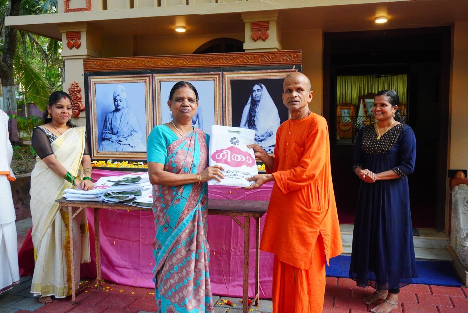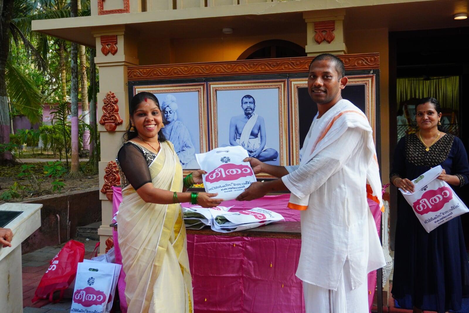 In the midst of the grand celebrations on 10th September, Tuesday, 2019 we have given away 10 nos Sewing machine (Tailoring machines) to the 10 flood Victims in the presence of the students, devotees and admirers. There are inhabitants of different villages in Kozhikode district and these machines will enable them to improve their hand to mouth living condition. At the end of the function we distributed prasadam to all of them.