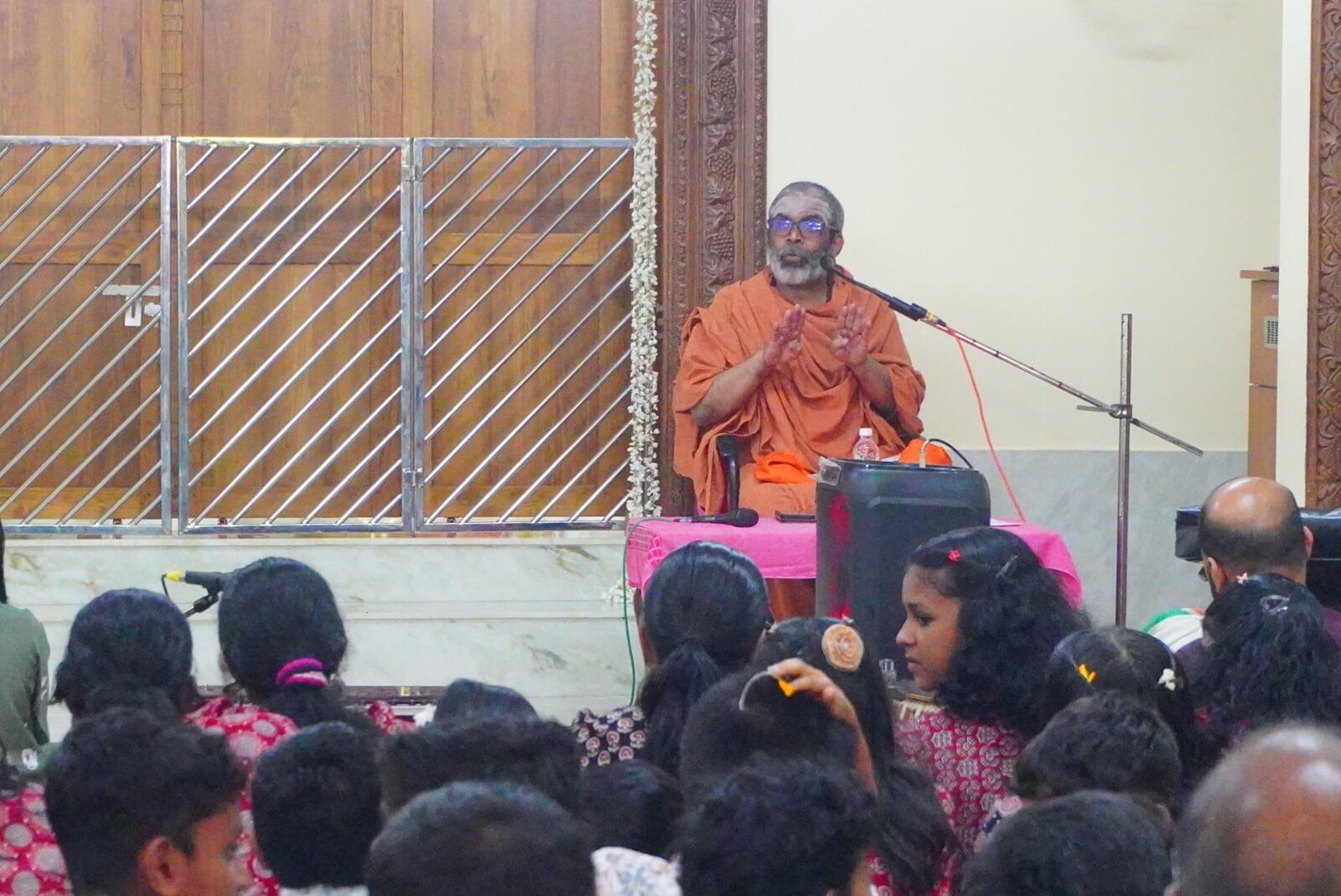 We have organized a youth convention on 16th November, Saturday, 2019 at our Math. Dr.TGK Murty Distinguished Scientist of ISRO, who developed strategic cameras for satellites, received number of awards and author of book Swami vivekananda an intuitive Scientist, Bangalore was the chief guest and main speaker. He gave talk with core values drawn from Swami Vivekananda and achievements of “ISRO”. A video clip on latest ISRO manned mission was presented. 68 plus 2 students from different schools participated. He had also a question answer interaction with the students. All of them participated actively and with abundant enthusiasm .Few parents, devotees and teachers totalling 100 people participated in the program. At the end we served noon Prasad to all participants.